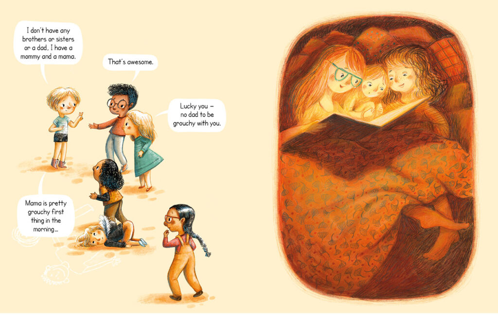 It is often when we get older that we begin to understand that there are certain expectations about what a family is or should be, but for children these ideas don’t exist. Every type of family is normal for them. and it should be for everyone. That is what I really like about the story. All types of families are equally special.