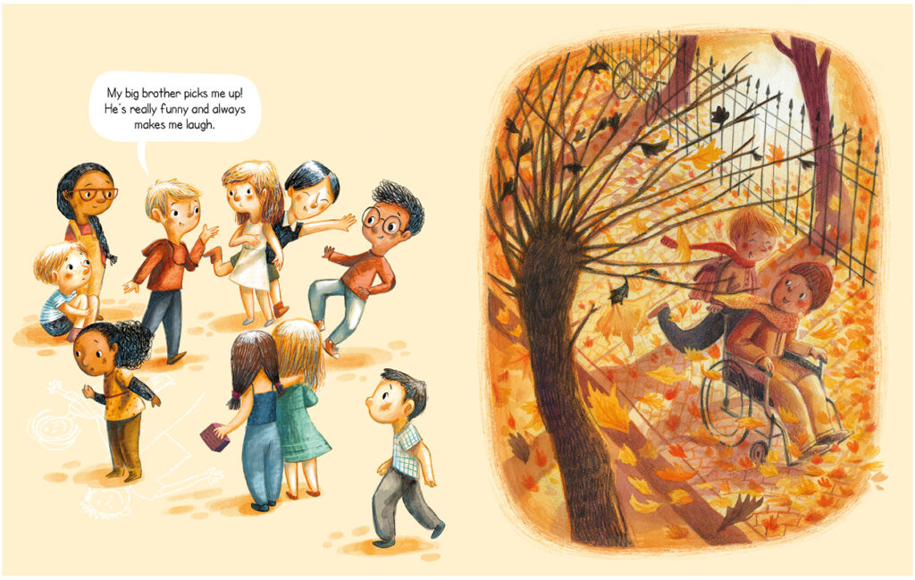 Ian: I made the story together with my wife, author Charlotte Bellière. We didn’t want to just have a catalogue with different types of families. We also wanted to tell a story with a beginning and an end. So after a bit of research we came up with the idea of having a group of children talking about their families, which shows that even though they are all very different they all have their own normalities.