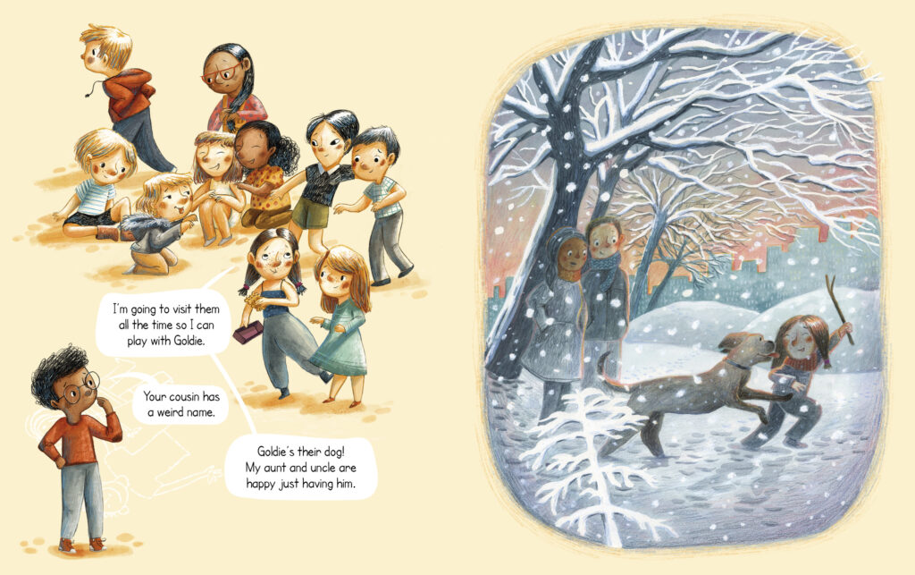 Charlotte: I love the “tiny family of two.” Or the uncle and aunt, who don’t have children and have a dog. I love these characters because they really show how you can create a family in a different way.