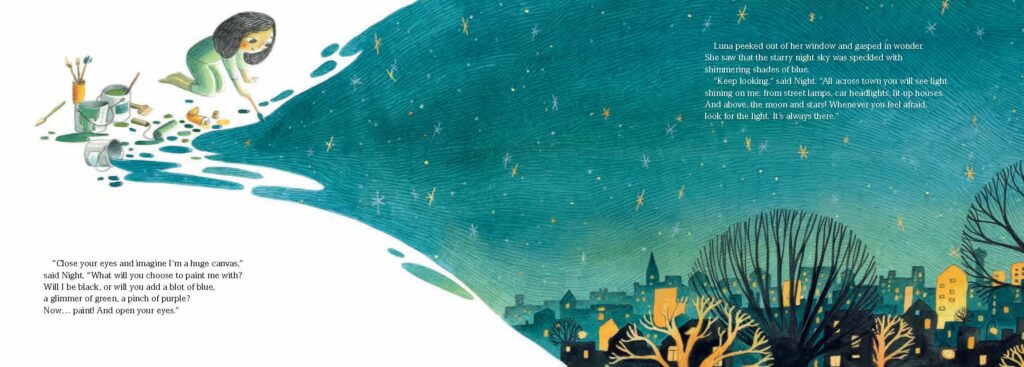I particularly like the moment in the story when Luna realises that the night is not all black. At this point in the story Night advises her to always look for the light, because it’s always there.